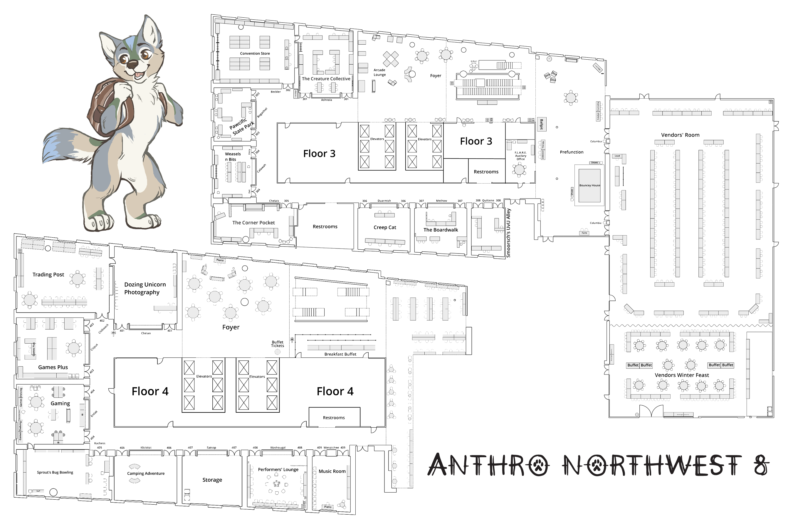 Map of the third and fourth floors